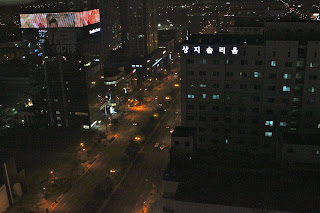 Fast forward a few hours and there we were, walking through the gate in Busan (about 40 minutes outside of Changwon) being greeted by our director. We were shocked by the fact that she hugged us immediately! It was nice to see a friendly face. She drove us back to our apartment. We were anxious about what this apartment would be like and prayed it would be bigger than a cardboard box. We couldn’t believe how nice it was once we opened the door. High ceilings, a loft space, kitchenette, all overlooking the city of neon lights on the penthouse suite of the 18th floor of the apartment. We were blown away by how awesome it was! Thanks for your prayers friends. More to come.